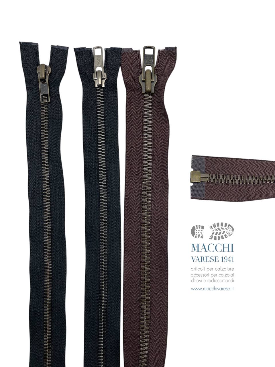 CERNIERA LAMPO IN METALLO DIVISIBILE YKK TIPO 8 CON CURSORE AUTOBLOCCANTE.