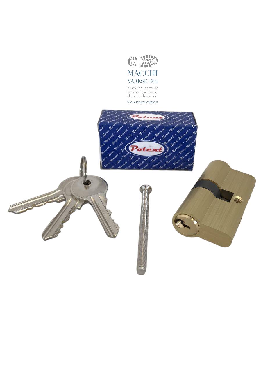 CILINDRO COD. 3000.3030 A PROFILO EUROPEO IN OTTONE NATURALE CON 5 PERNI DI COMBINAZIONE. DOTATO DI 3 CHIAVI UNIVERSAL IN OTTONE CROMATO + VITE DI FISSAGGIO
