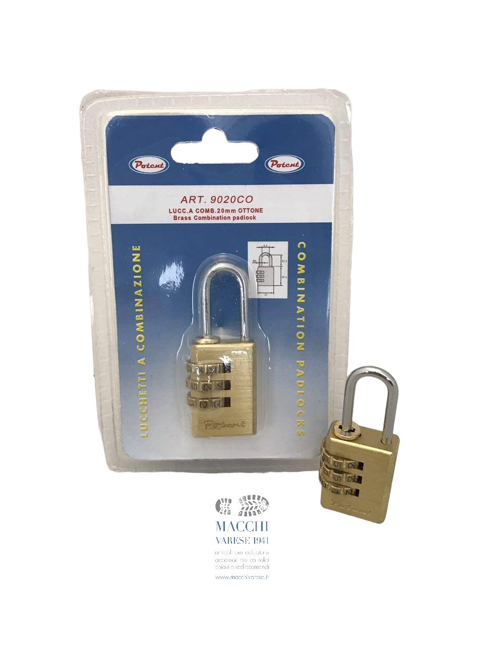 LUCCHETTI POTENT A COMBINAZIONE OTTONE 20mm ART. 9020CO