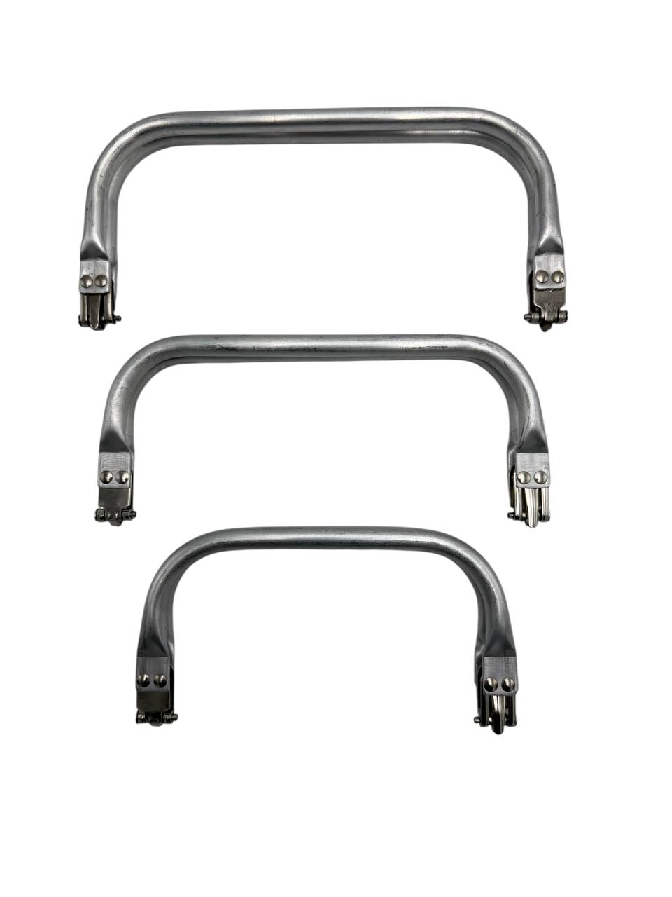 Maniglie per borse in alluminio apribili. Per la costruzione di borse artigianali fatte a mano.