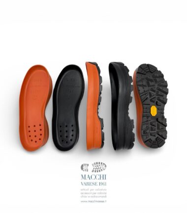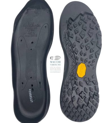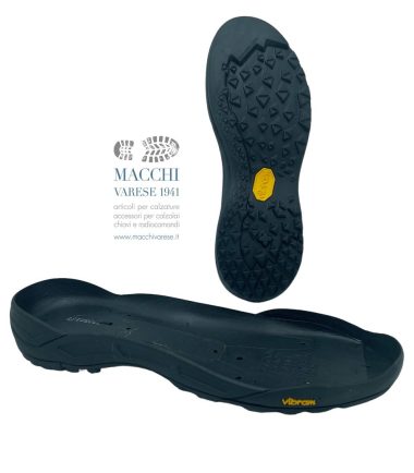 SUOLA MAC021 BRINZIO Suola in gomma con battistrada Vibram Foura e zeppa in micro. colore: Battistrada nero con zeppa grigio asfalto misure disponibili: 39-40-41-42-43-44-45-46-47