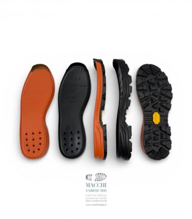 Suola scatolata ideata per risuolare scarponi da montagna e da alpinismo con il nuovo chiodo di Vibram “Traction lug”, capace di aumentare la trazione proprio sui terreni più impervi. Alta e profonda, da un ottimo comfort durante la camminata. misure disponibili: 36-37-38-39-40-41-42-43-44-45-46-47-48-49,5 colori disponibili: nero – arancione Mescola: battistrada e