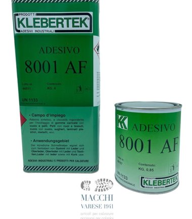 ADESIVO 8001 AF KLEBERTEK. ADESIVO POLIURETANICO AD ELEVATA PRESA INIZIALE. OTTIMA ADESIONE SU MATERIALI SINTETICI. COLORE: TRASPARENTE. CONFEZIONI DISPONIBILI: – LATTA DA 0,850 kg – LATTA DA 4 kg