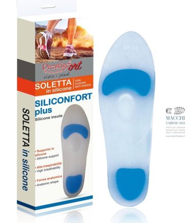 PLANTARE IN SILICONE CON POTERE AMMORTIZZANTE. CON LEGGERI SUPPORTI E CUSCINO DI SOSTEGNO PER IL METATARSO. PREVIENE AFFATICAMENTO E STANCHEZZA. MISURE DISPONIBILI: 35/36-37/38-39/40-41/42-43/44-45/46