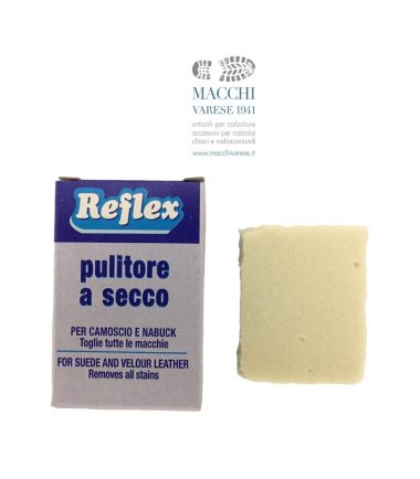 PULITORE A SECCO PER NUBUK. RIMUOVE LE MACCHIE DA NUBUK E SCAMOSCIATI. LATO IN PARA PER LE MACCHIE PIU’ IMPORTANTI.