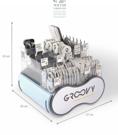 ESPOSITORE DISPLAY GRAB&GO. COMPLETO DI 62.PZ ACCESSORI Supporto Auto Plastica 360 – Pantone C11 4 Caricatore Auto 2USB – 2.4A – Pantone C11 6 Spina Muro 2USB – 2.4A – Pantone C01 6 Spina Muro 1+1 – 3.1A – Pantone C01 4 Caricatore Wireless – 5W – Pantone C11 1