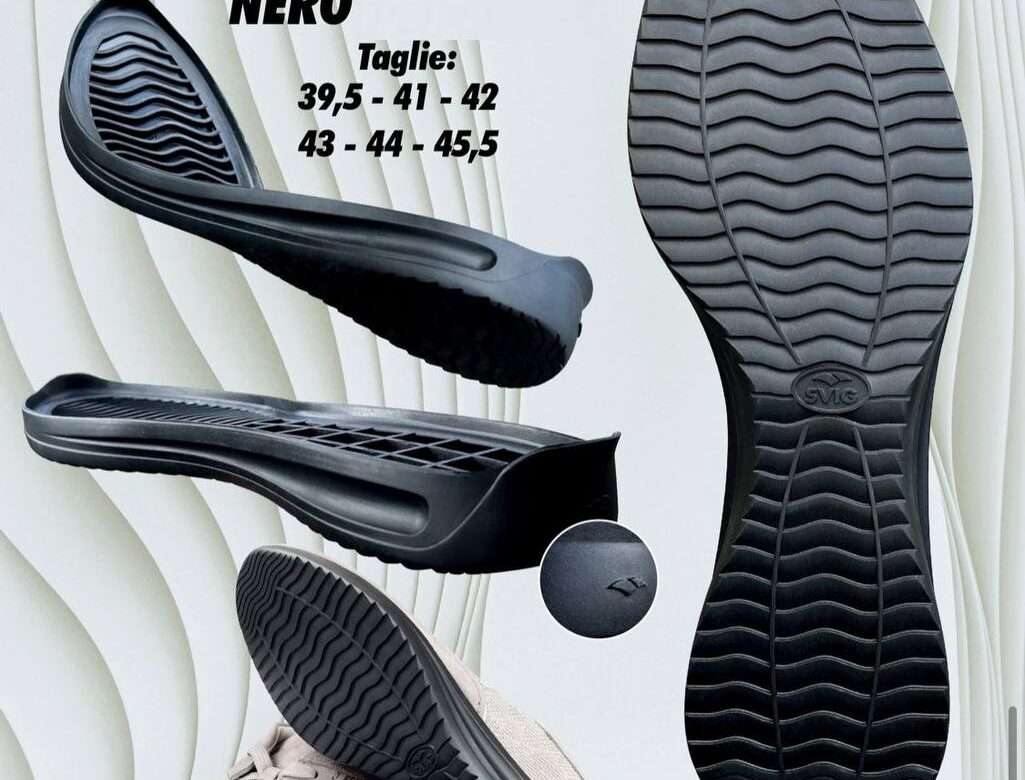 Fondo semiscatolato in gomma ideato per la risuolatura di scarpe da uomo classiche.