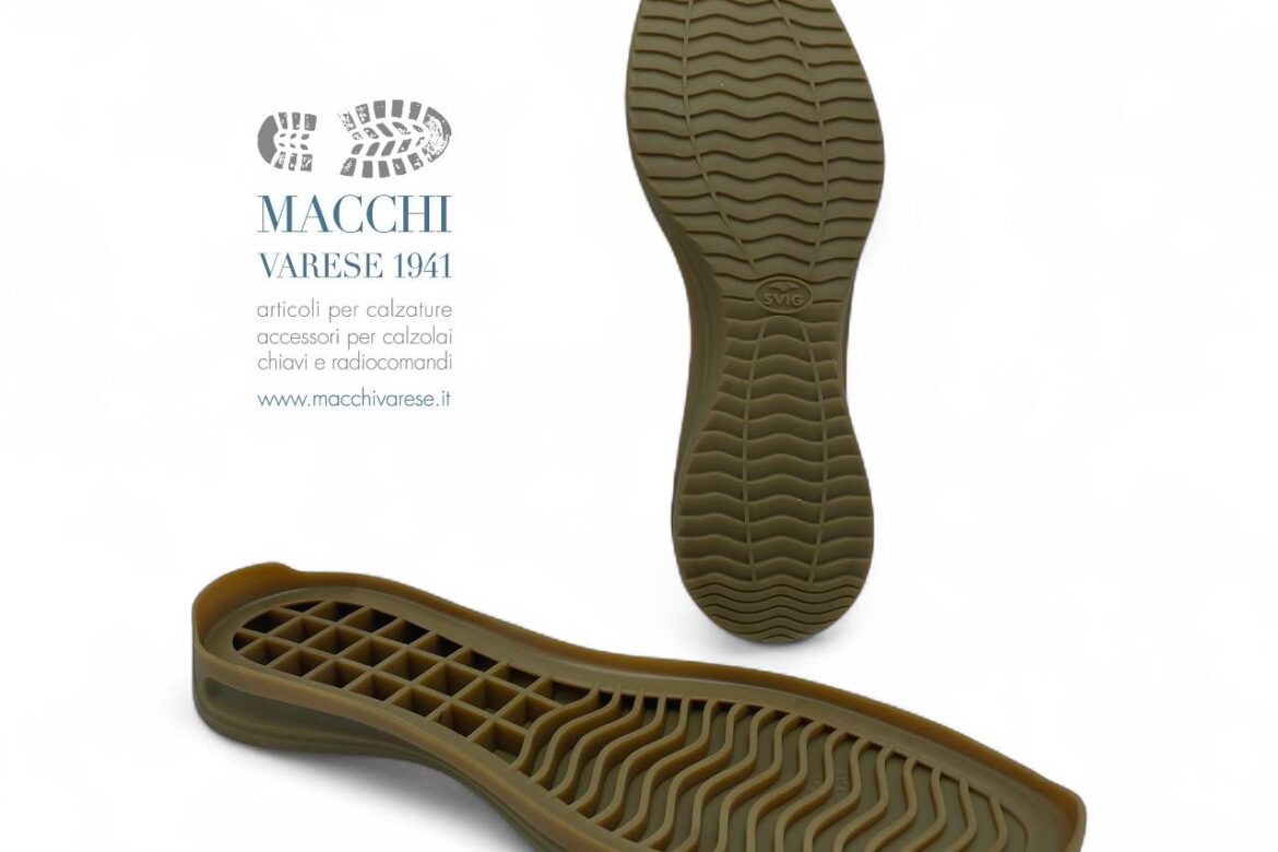 Fondo semiscatolato in gomma ideato per la risuolatura di scarpe da uomo classiche.